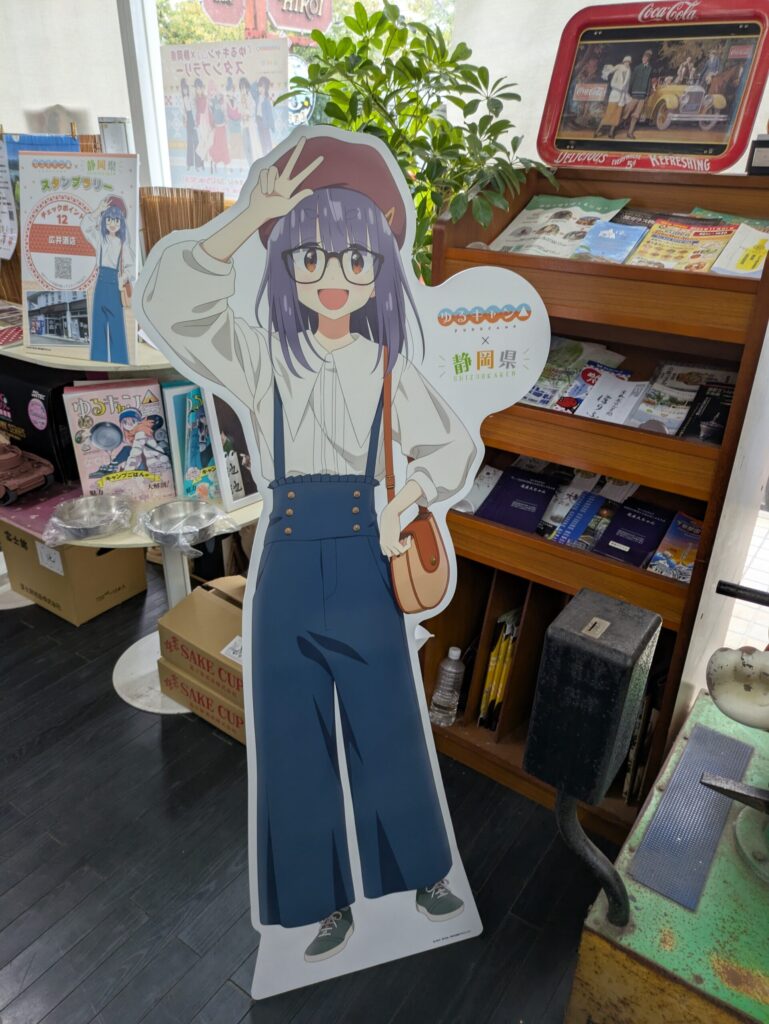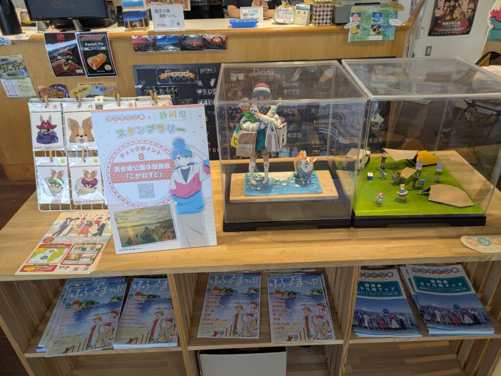 お店のガラスにもQRが貼ってありますので、中に入らずともスタンプを集められますが、中では特設スペースやゆるキャン△グッズが販売されているので、ぜひ中に入っていただきたいです。