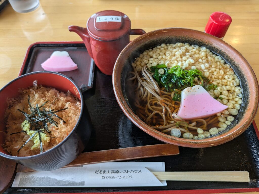 前回スタンプラリーでも食べましたが、わさび丼と温そばを食べました。