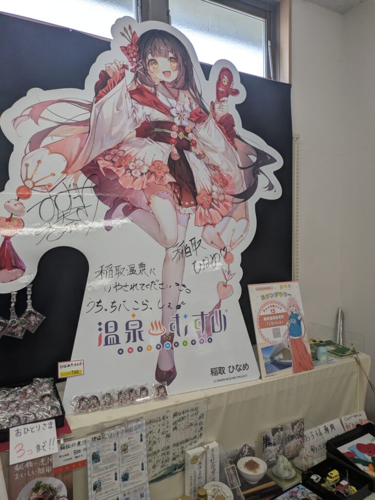 入口にはなでしこちゃん(各務原 なでしこ)のパネルがありましたが、QRの置いてあった場所には温泉むすめ「稲取 ひなめ」のパネルが置いてありました。