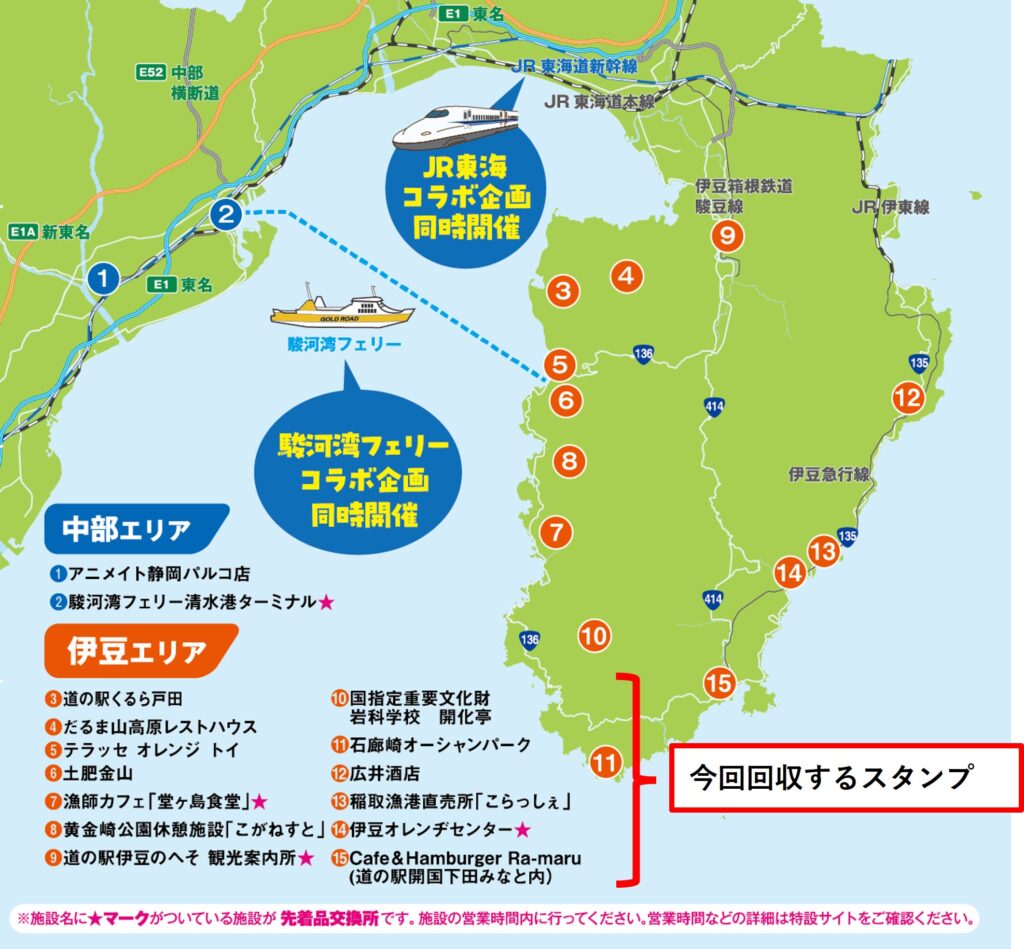 #2では中部エリア(静岡市)を回りましたが、今回の#3では、メインになる伊豆エリア13ヶ所を回ります。