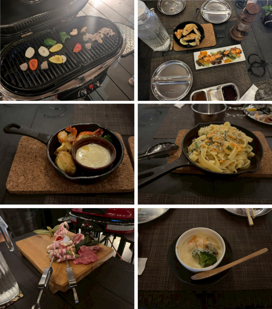 今回はBBQコース(朝食付)で予約しました。1人当たり18,250円(税込)にプラスでオプション代がありましたが、22,000円程度で値段以上にとても満足できる場所でした。